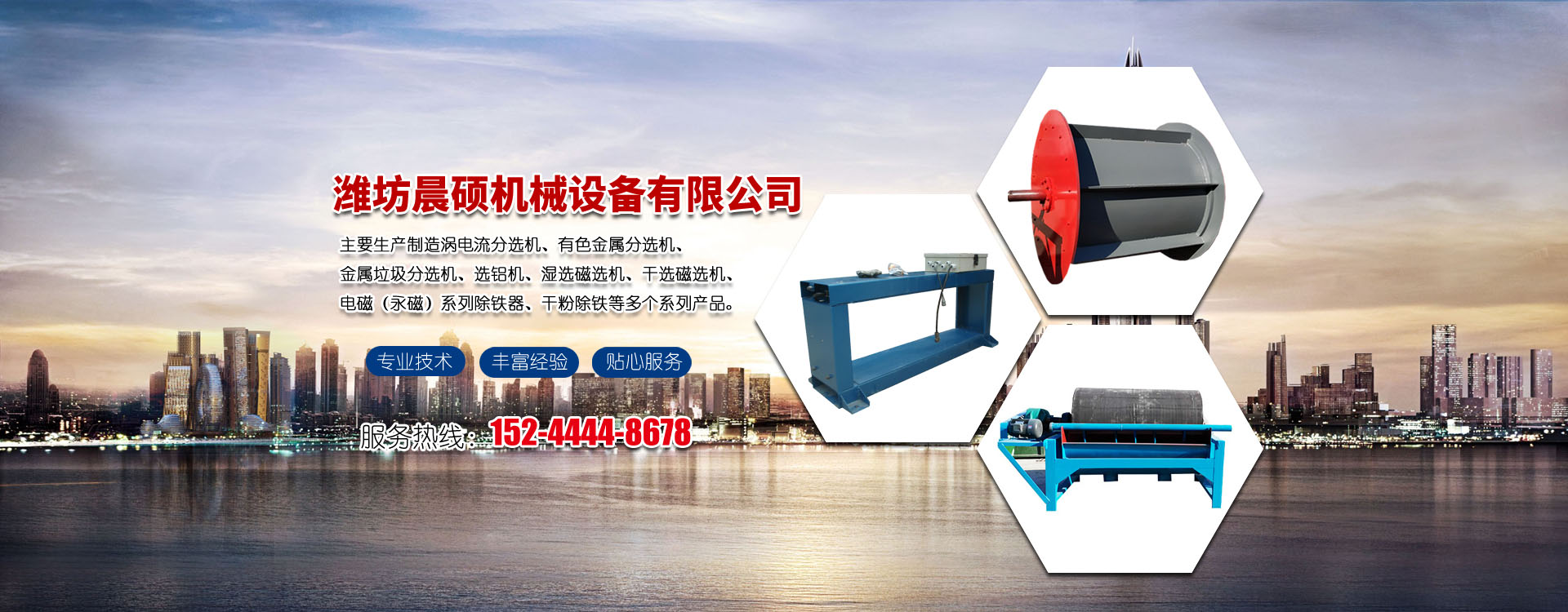 主要生產制造渦電流分選機、有色金屬分選機、金屬垃圾分選機、選鋁機、濕選磁選機、干選磁選機、電磁(永磁)系列除鐵器、干粉除鐵等多個系列產品。